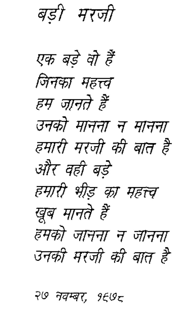 - बड़ी मरजी