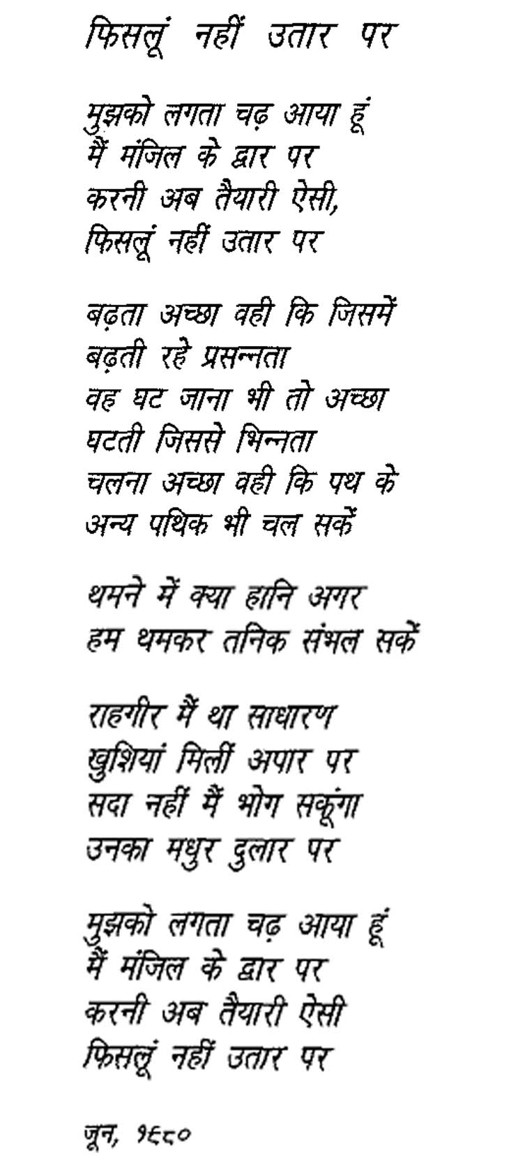 - फिसलूं नहीं उतार पर